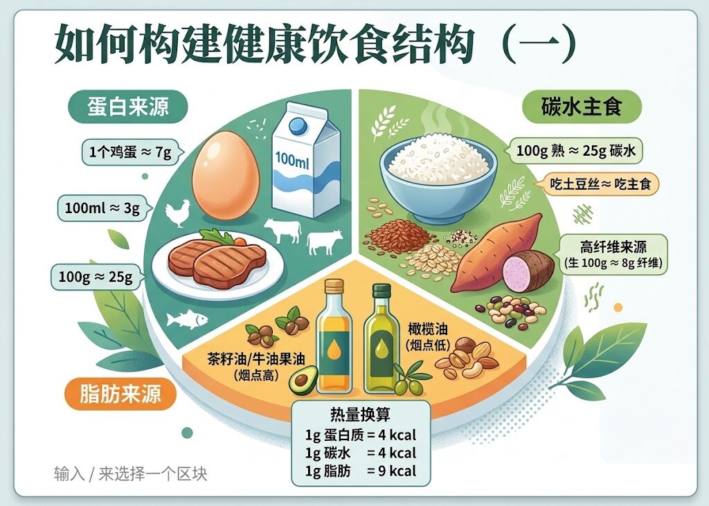 - 能买到的价廉物美的脂肪:茶籽油/牛油果油(烟点高适合炒菜),橄榄油(烟点低适合凉拌),坚果
