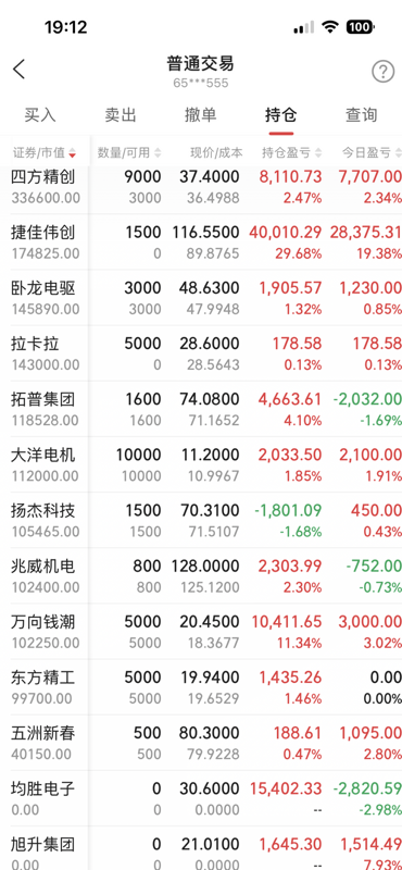 • -捷佳伟创。12个点的时候卖了之前的持仓。