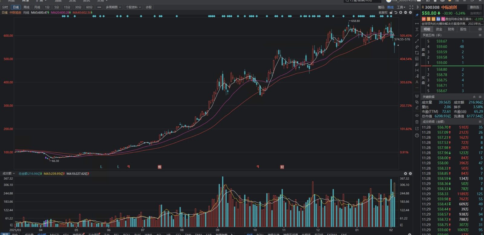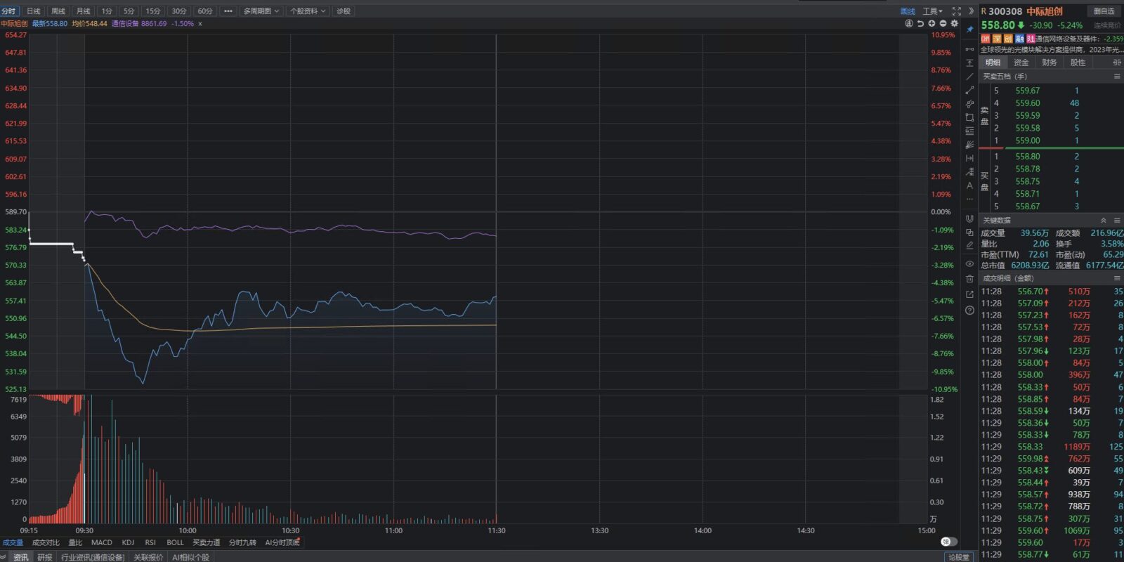早盘中际旭创大跌,我觉得今天和明天都是一个极好的加仓点。不过我也知道一般人不敢加。